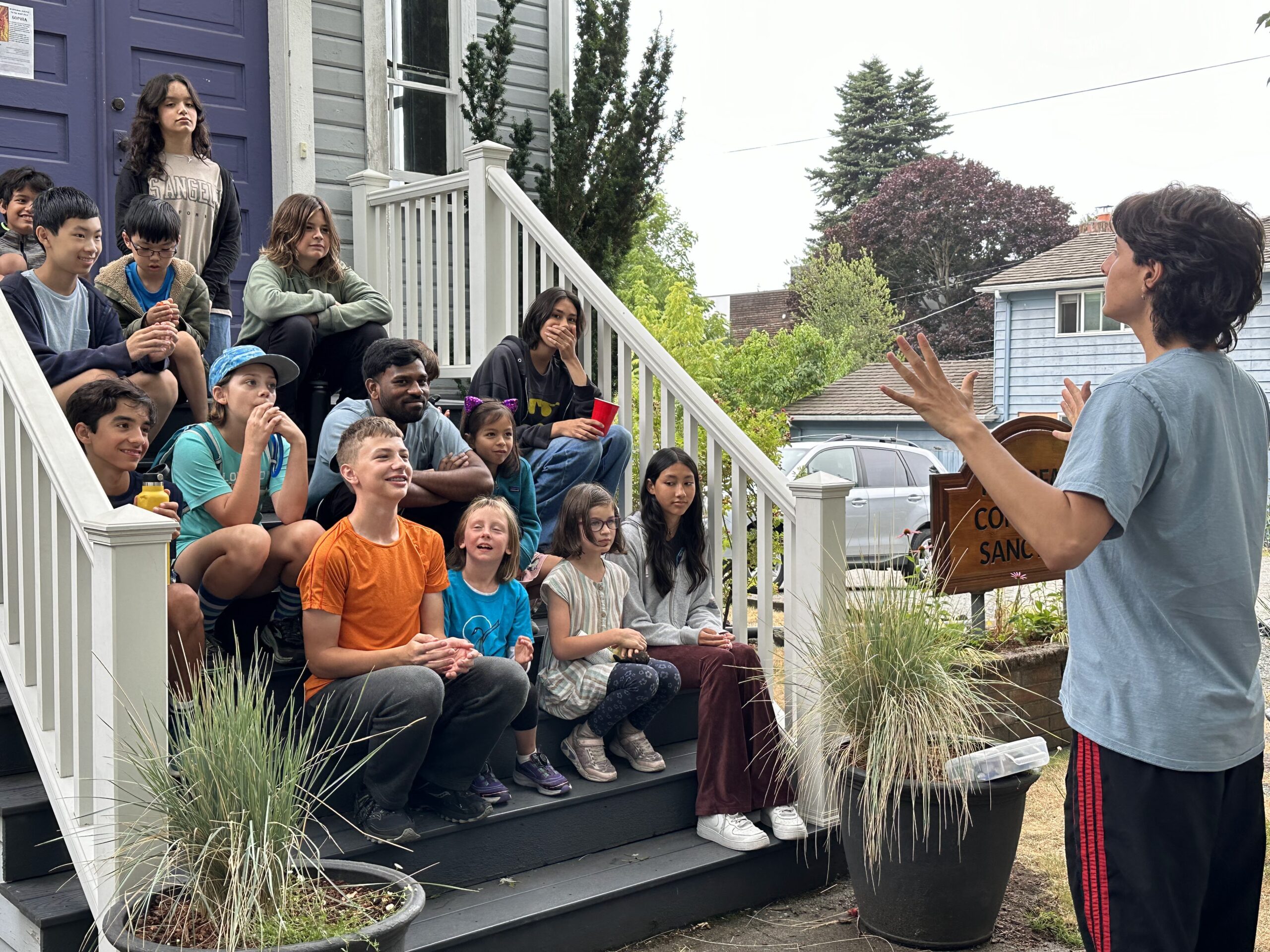 It’s an unique all-ages(K-12), non-denominational community day-camp experience for children and youth which takes place each Summer at the Interfaith Community Sanctuary in the Ballard neighborhood of Seattle, WA. Campers and counselors gather from within the Seattle community and worldwide (especially from our affiliate organizations in India and Uganda) to help integrate the beauty of the gifts within through a variety of activities. It is a wonderful way for participants to make connections with others from across the globe!